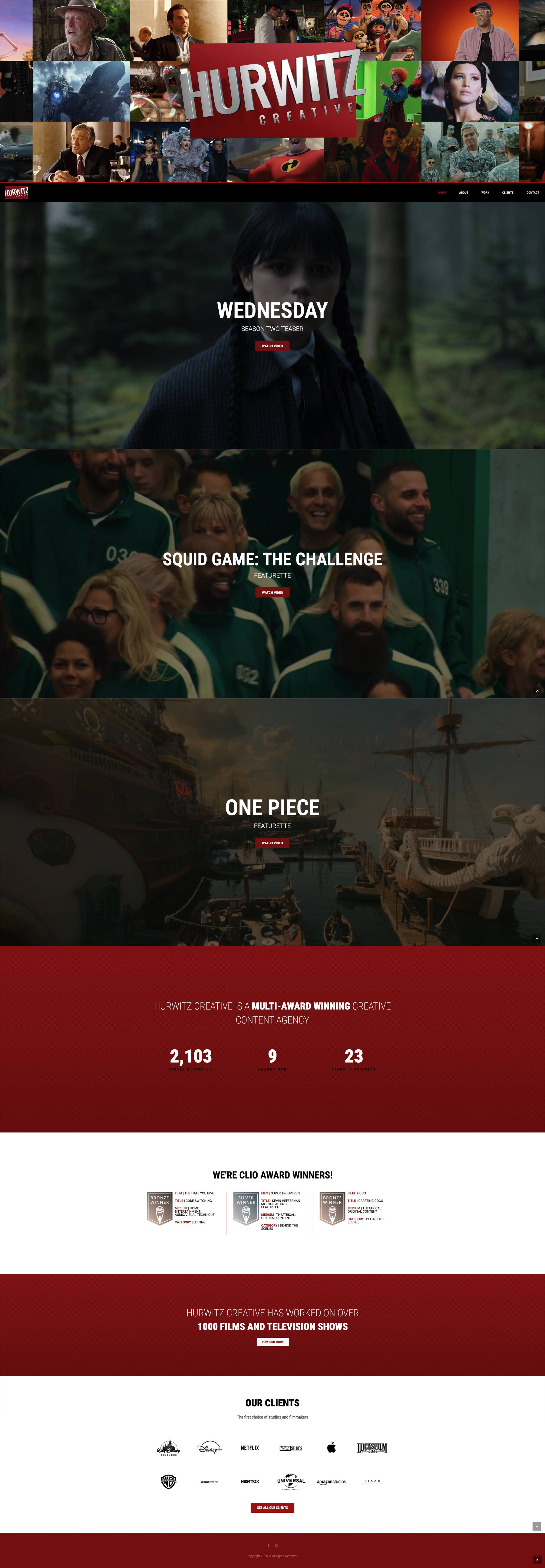 Hurwitz was a fun client to work on. Their initial logo was pretty flat so I created a much more dynamic 3D key art for the hero image that more accurately captured their work. The rest of the layout was simple and kept their videos front and centered while utilizing a clever layered overlay as users scroll to maintain engagement.